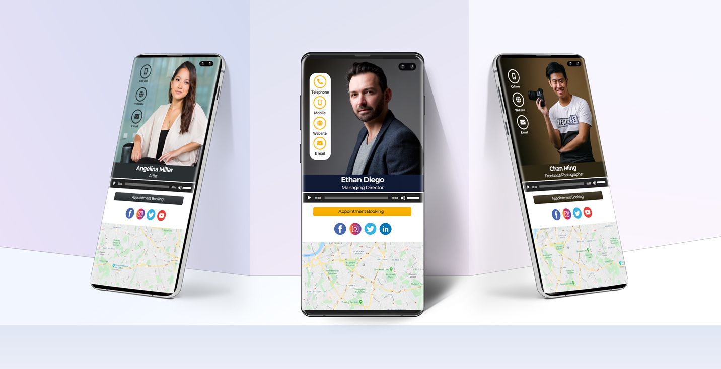 An amazing new product, it’s a digital Business card. You can use this card for your business or for personal use. In the digital card, you can put your contact information like phone number, email, website, social media links, profile photo, promo video and an audio file. You can send this card through phone message, social media, email or any digital media platforms.